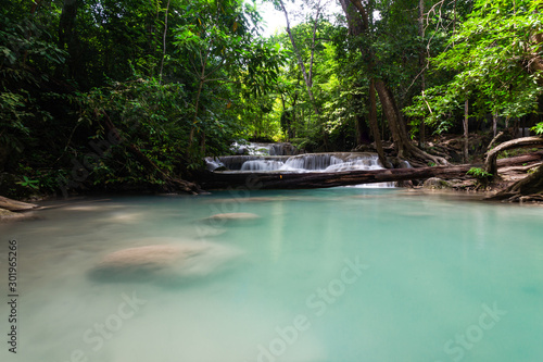 © minicase, Naklejka premium Amazing beautiful Erawan waterfall in the rainforest park in Thailand,Erawan National Park