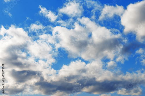 Fototapeta premium Amazing beautiful fluffy cumulus clouds on a blue sky. Abstract natural...