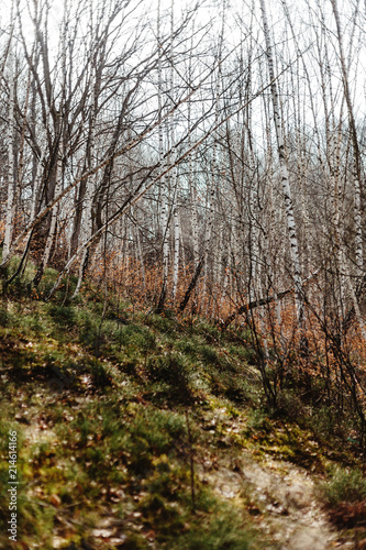 Fototapeta premium amazing beautiful view of woods in sunny spring mountains