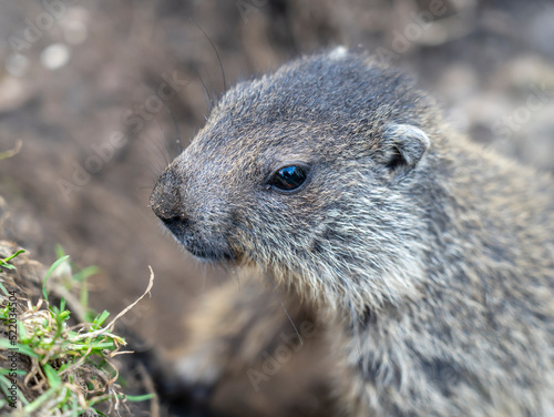 Naklejka premium Amazing close-up of a young marmot outside his burrow