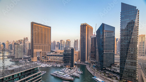Fototapeta premium Amazing colorful dubai marina skyline during sunset timelapse