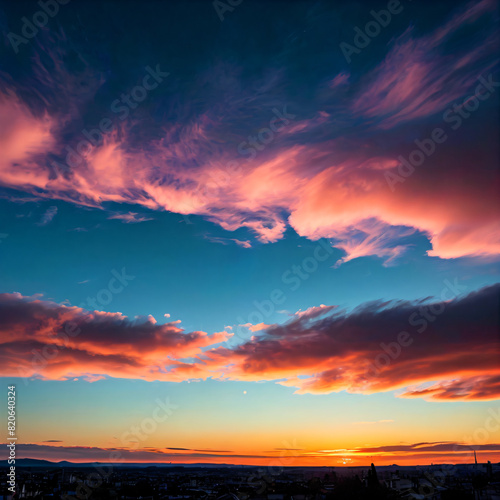 © Charoen, Fototapeta premium Amazing colorful sunset sky with pink, blue and orange clouds