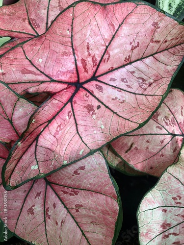 Fototapeta premium amazing colors of pink caladium flowering plants in the family Araceae