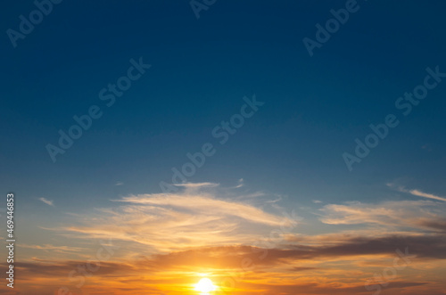 Obraz premium Amazing dawn against a clear sky with a bright sun in the clouds