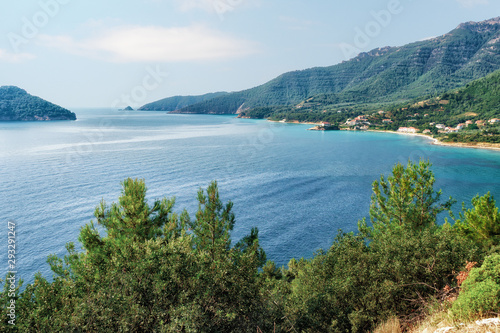 © Yana, Naklejka premium Amazing day view to the North Aegean sea above the pine branches in Tassos island, Greece