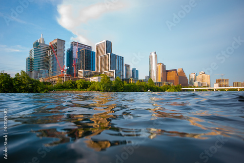 Naklejka premium Amazing Dramatic Austin Texas Sunset Mirror Town Lake Reflection with...