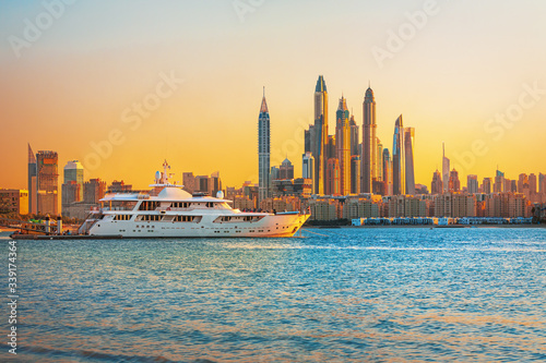 Fototapeta premium Amazing Dubai Marina skyline at sunset, United Arab Emirates