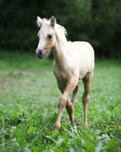 Fototapeta premium Amazing foal moving alone on pasturage