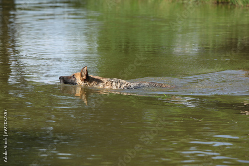 © Zuzana Tillerova, Obraz premium Amazing german shepherd in the water