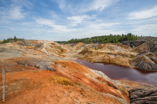© Mishainik, Obraz premium Amazing kaolin clay marsian landscape quarry open pit at summer day