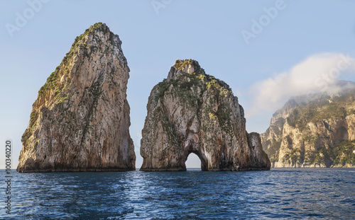 Fototapeta premium Amazing landscape at Capri Island with Faraglioni - coastal rocks formation at the Mediterranean Sea.