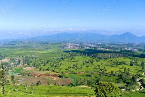 © dikadi16, Obraz premium Amazing landscape view and green tea gardens and blue sky