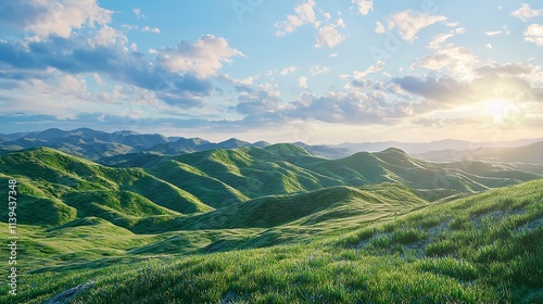 Obraz premium Amazing Landscape with Green Hills and Blue Sky