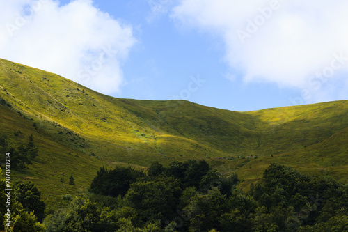 © Андрей Репетий, Fototapeta premium Amazing mountain landscape of green hills in summer. Location place Ukraine Carpathian meadow Borzhava.