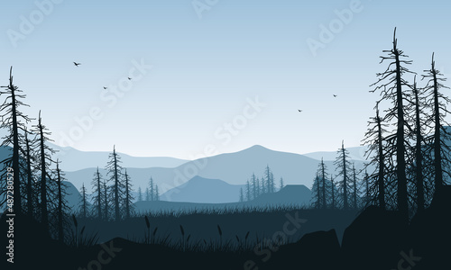 © City Vector, Fototapeta premium Amazing mountain view from out of the city with the blue sky and the silhouettes of dry trees around