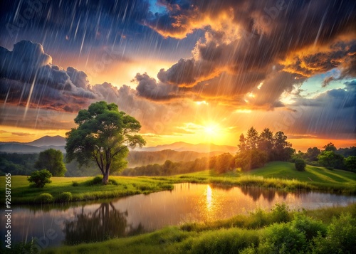 © Businessian, Obraz premium Amazing natural scenery rainy season waterfall wallpaper