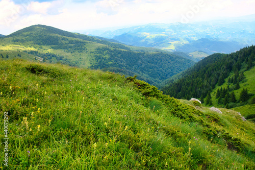Fototapeta premium Amazing nature view of National park Kopaonik - the most famous ski center of Serbia - on a sunny summer morning