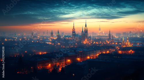 © Akash Tholiya, Fototapeta premium Amazing nighttime cityscape of Warszawa, the capital city of Poland