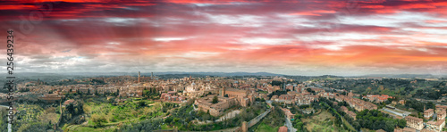 Fototapeta premium Amazing panoramic aerial view of Siena medieval skyline at sunset, Tuscany.
