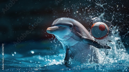 Fototapeta premium Amazing photo of a dolphin playing with a ball.