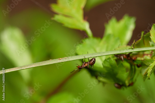 Fototapeta premium Amazing red wood ant,, Formica rufa,, on its natural environment, Danubian...