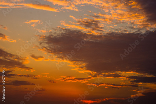 © Wingedbull, Obraz premium Amazing sea sunset on the pebble beach, the sun, waves, clouds