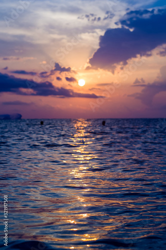 © Wingedbull, Obraz premium Amazing sea sunset, the sun, waves, clouds