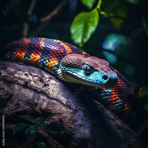 © Boss, Fototapeta premium Amazing Shot of a Colorful Snake over a Tropical Background.