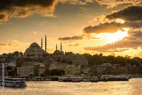 Fototapeta premium Amazing skyline of Istanbul at sunset with Suleymaniye Mosque, Turkey