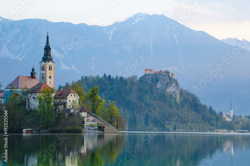 © Kavita, Fototapeta premium Amazing sunrise at the lake Bled