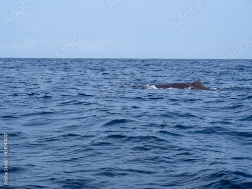 © José Rego, Obraz premium Amazing sunset in atlantic ocean with waves and wildlife dolphins and sperm whales in açores, azores, portugal