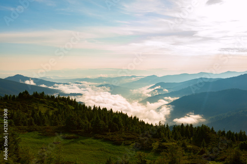 © sanechka, Obraz premium Amazing sunset in the mountains after the storm