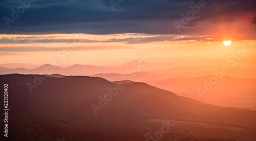 Obraz premium Amazing sunset in the mountains - beautiful golden light peaking through...