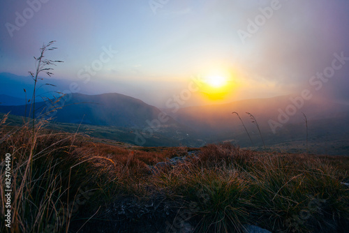 Fototapeta premium Amazing sunset in Ukrainian Carpathian mountains , Chornigysrsyi hrebet range