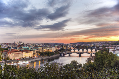 © nikolay100, Fototapeta premium Amazing sunset over Prague cityscape