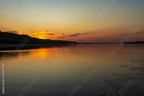 Naklejka premium Amazing sunset over the river