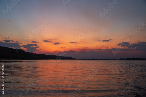 Naklejka premium Amazing sunset over the river
