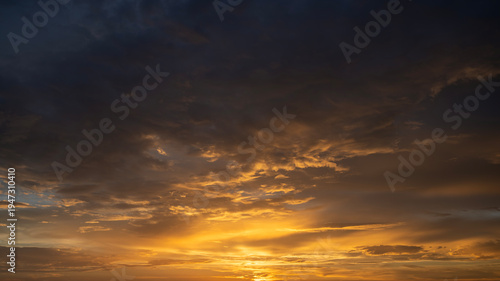 Fototapeta premium Amazing sunset skyscape. Evening sky with bright colorful orange and yellow clouds