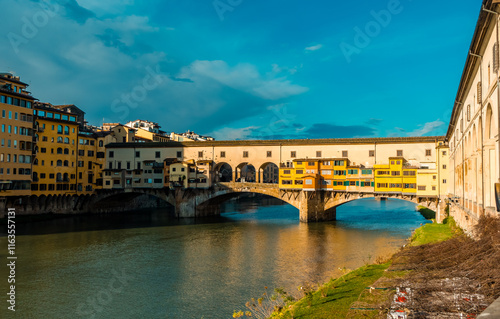 Obraz premium Amazing sunset view of the Old Bridge (Ponte Vecchio in Florence, Italy