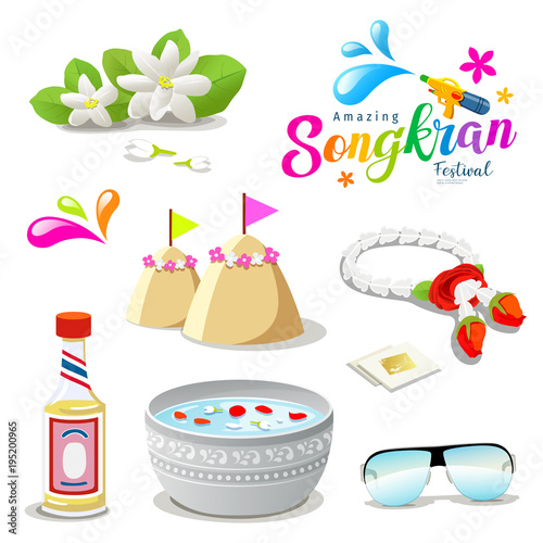 Fototapeta premium Amazing Thailand Songkran festival collections background, vector illustration