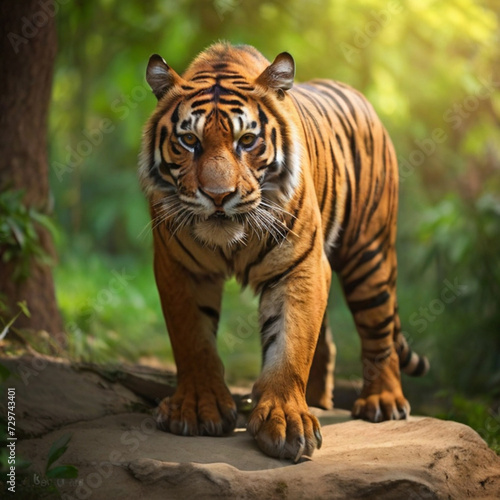© Shhb, Naklejka premium Amazing tiger in the nature habitat. Tiger pose during the golden light time. Wildlife scene with danger animal.
