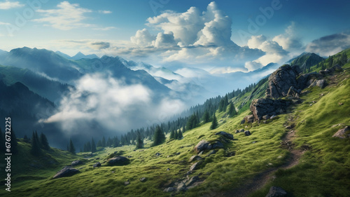 © BornHappy, Fototapeta premium Amazing Trail to the Peak in Carpathian Mountains