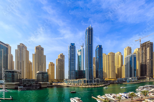 Fototapeta premium Amazing view of Dubai Marina Waterfront Skyscraper, Residential and Business Skyline in Dubai Marina, United Arab Emirates