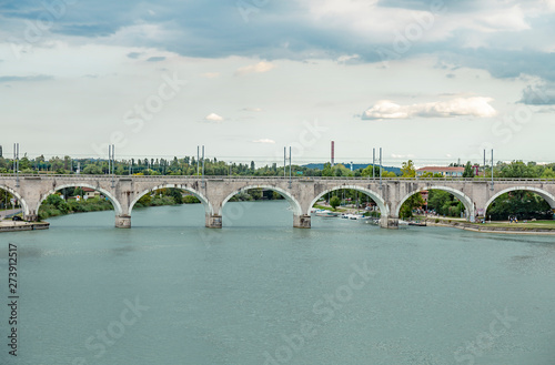 Fototapeta premium Amazing view of the bridge in Peschera Del Garda