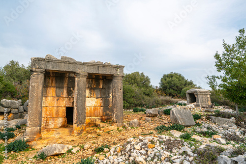 Naklejka premium Amazing views from Kanlıdivane (ancient Canytelis), which is an ancient city situated around a big sinkhole in Mersin, Turkey.