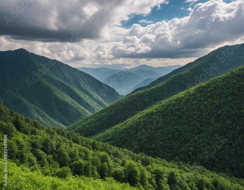 © Hamid, Fototapeta premium Amazing Wild Mountain Forest Landscape with Cloudy Sky