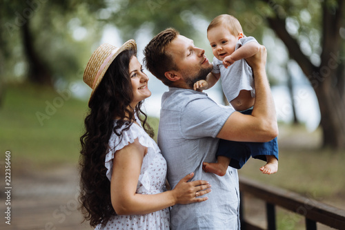 © shunevich, Fototapeta premium Amazing young couple with small son in the park
