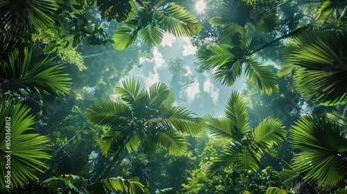 Obraz premium Amazon canopy. Variations of foliage. low angle view. Generative AI.