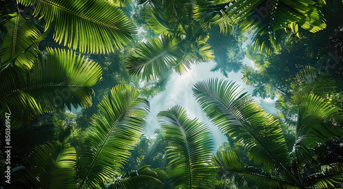 © visoot, Fototapeta premium Amazon canopy. Variations of foliage. low angle view. Generative AI.