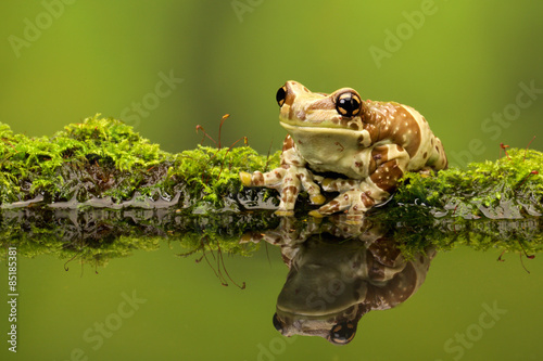© bridgephotography, Naklejka premium Amazon Milk Frog on a mossy log
